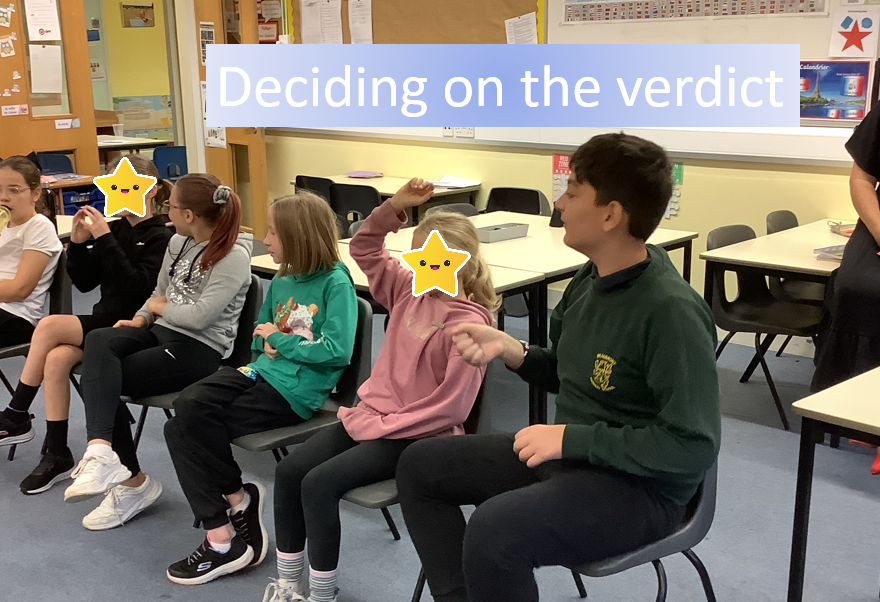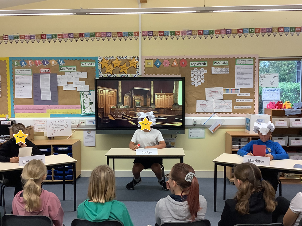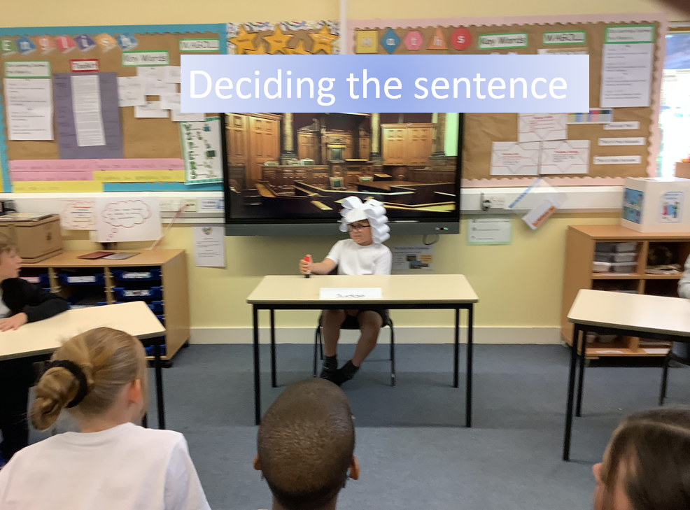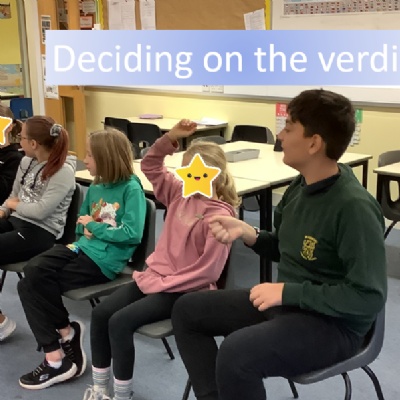 The Key Stage 2 children looked at different scenarios, where e-safety had been used and potentially broken the law. They explored the point of view of the defendant, before deciding on a verdict using a court-style role play. Finally the 'judge' considered the sentence based on real-life situations.